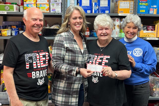 The Rotary Club of North Cobb made a $1000 financial donation that they raised via a ”Super Bowl Square” raffle. In the photo below, Special Projects Chair Christina Hawkins and President Nancy Prochaska are presenting the check to Mary and Ed Ettel, who founded Project Mail Call. in 2005.