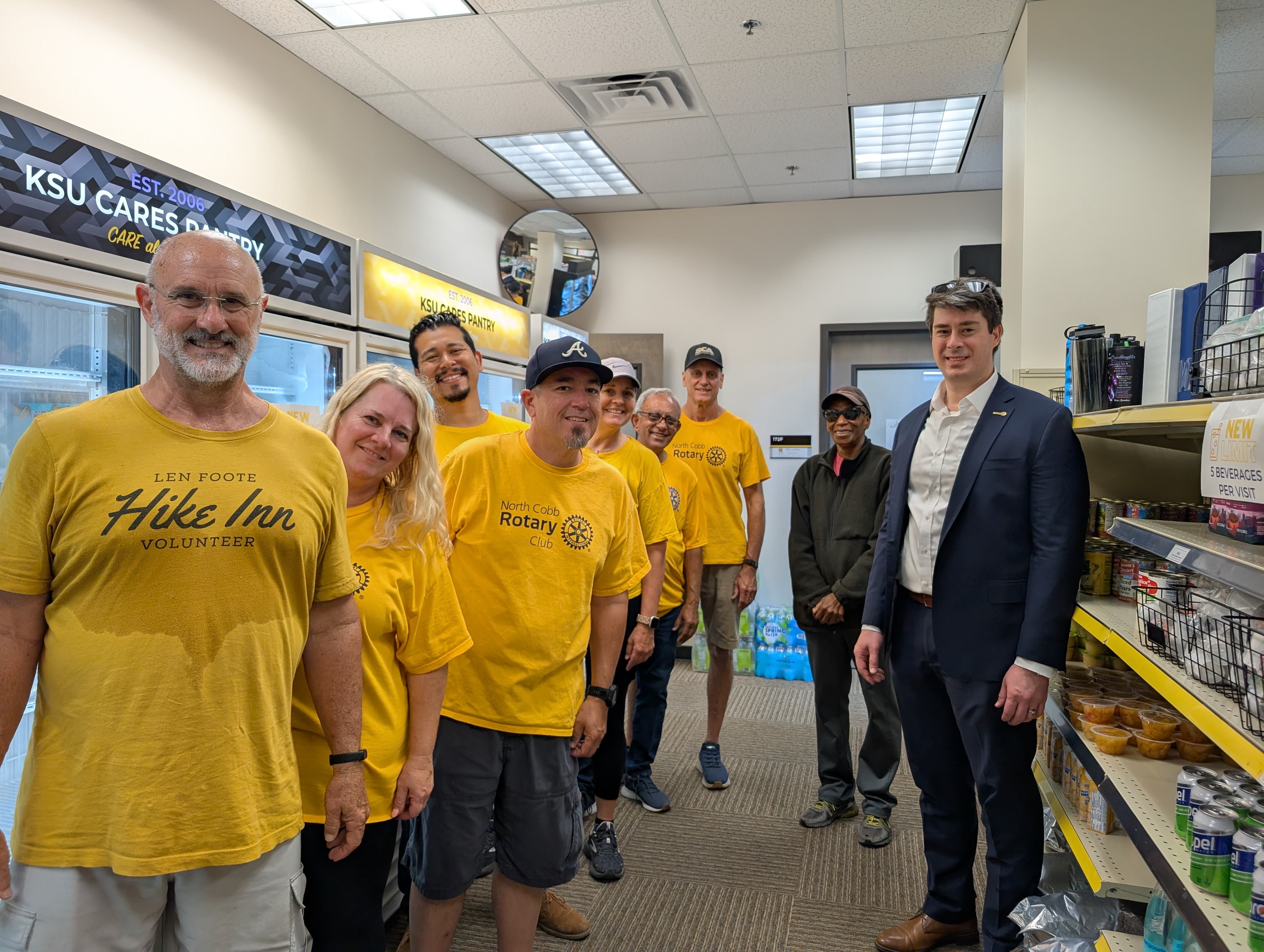 North Cobb Rotarians partnered with Kennesaw State University Students to unload a freight truck and restock the shelves at the pantry for students who are in need of free food while studying and learning at KSU.