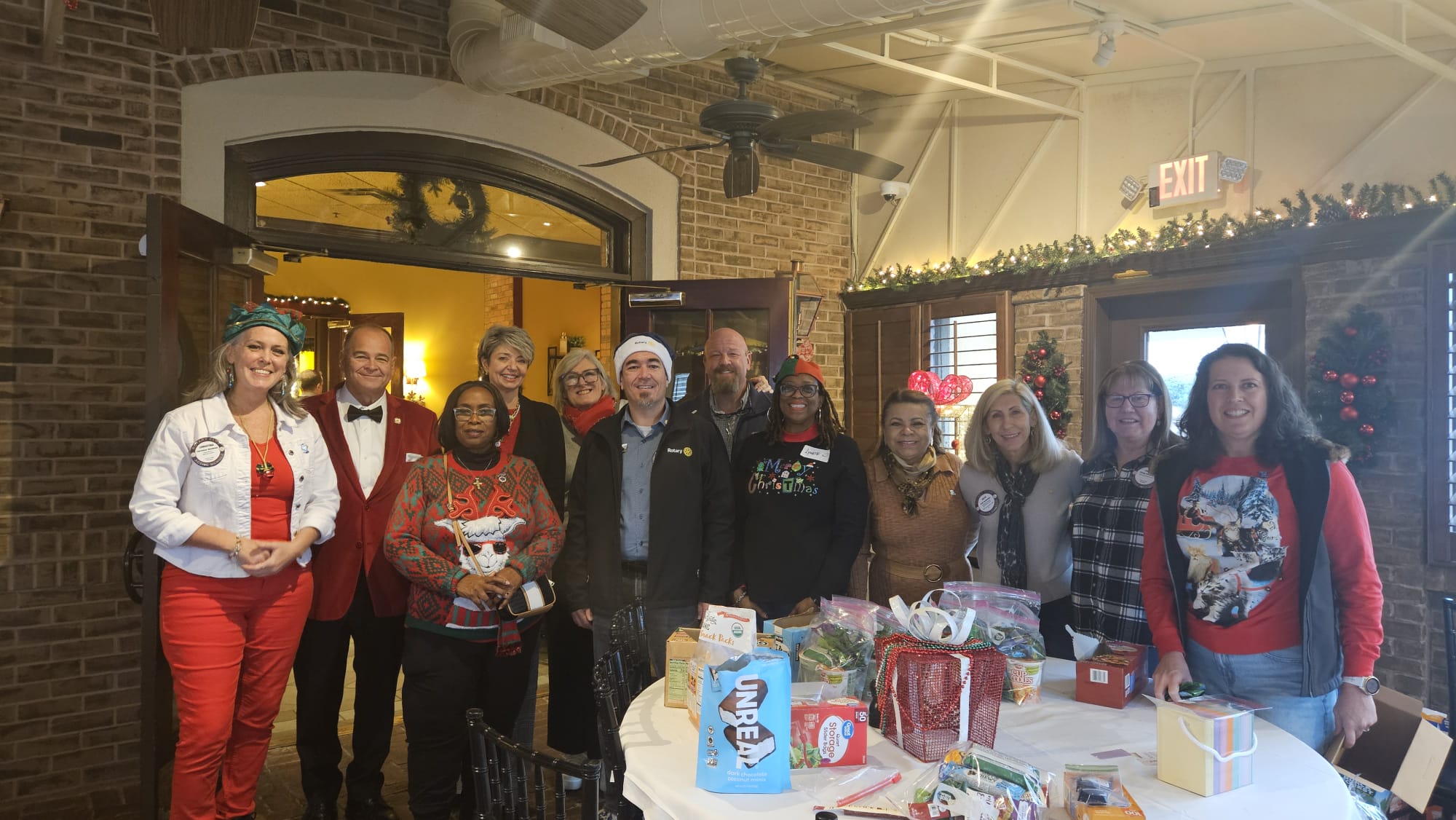 The North Cobb Rotary Club purchased and packaged items for the families of the Ronald McDonald medical center. Club members Christina Hawkins, Deborah Morton and Steph Espinoza purchased the items at Walmart and Costco to prepare for a packaging day after a club meeting. On 12/19/25 club members stayed after a club meeting to wrap the items together and prepare for delivery.