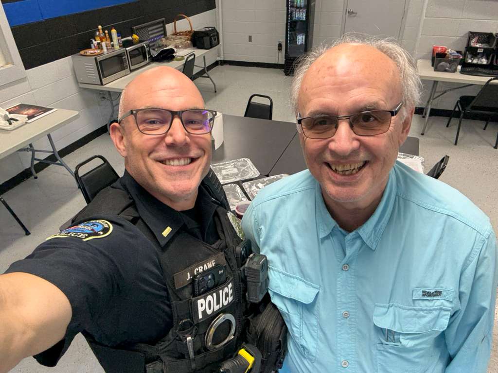 To support the local police departments during the Thanksgiving Holiday, the North Cobb Rotary Club purchased thanksgiving meals for the City of Acworth and City of Kennesaw police departments to thank them for their service and work during the holidays. Members Dave Schwickerath and Jose Gonzalez picked up the food from Copelands of New Orleans and delivered the food.
