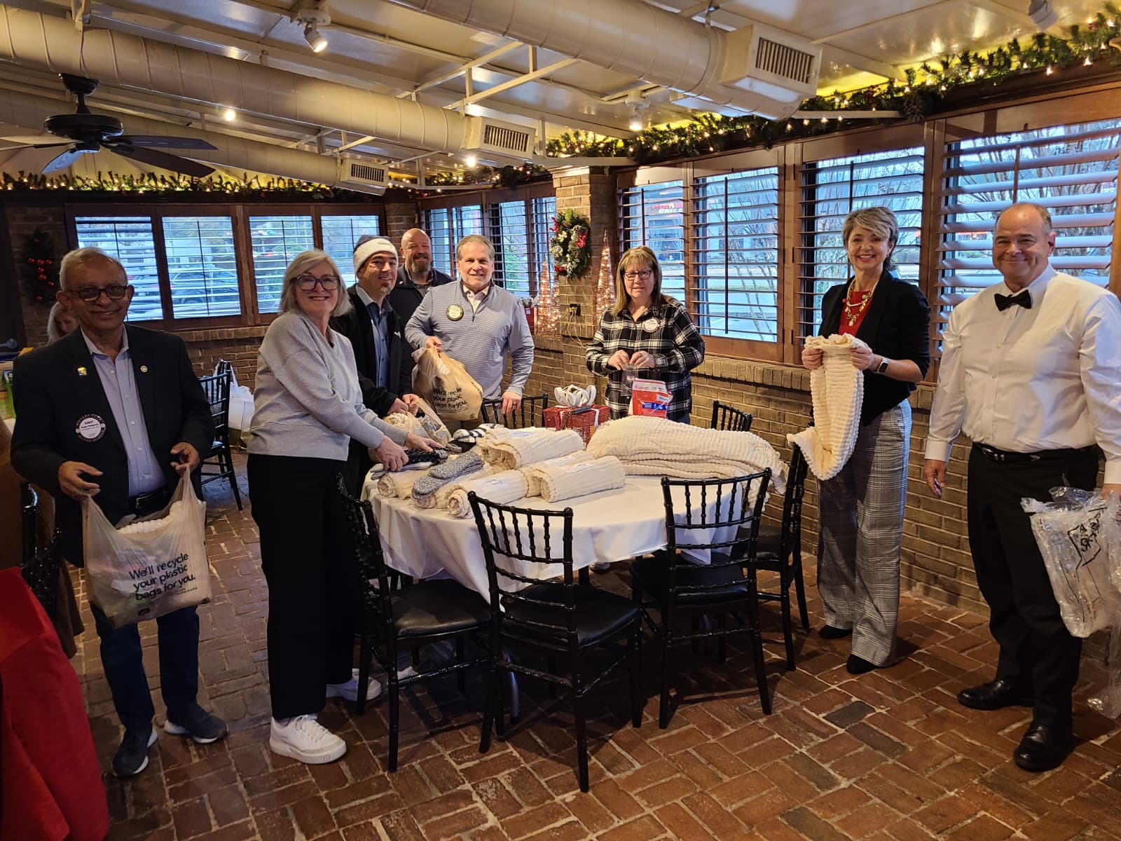 The North Cobb Rotary Club purchased and packaged items for the families of the Ronald McDonald medical center. Club members Christina Hawkins, Deborah Morton and Steph Espinoza purchased the items at Walmart and Costco to prepare for a packaging day after a club meeting. On 12/19/25 club members stayed after a club meeting to wrap the items together and prepare for delivery.